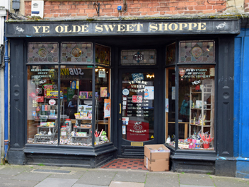 Daarna lopen we de Priory Road in, waar we een paar oude winkelpanden op de foto zetten. Haast vanzelf kom je nu bij een poortje, dat de de Cathedral Green omsluit. Beetje vreemde kathedraal overigens, want de torenspitsen ontbreken. Toch domineert de kerk het stadje, want het is in de loop der eeuwen nauwelijks uitgebreid.