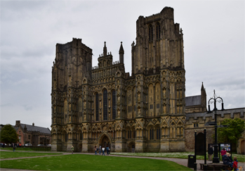 We verlaten de stad met de abdij en verhuizen, net als de bisschop destijds, naar Wells om daar onder meer de kathedraal te bezoeken. Dat lukt via de A39, een afstand van zo’n 32 kilometer. Met een half uurtje zijn we er dus al en ook het vinden van een parkeerplek valt mee.