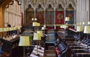 Tsja, en dan gaan we maar weer eens binnen kijken. Eigenlijk wel weer een kerk als al die andere -hoe kan het ander?- maar wel met een paar bijzonderheden. Zo geeft de noordelijke beuk toegang tot het Chapter House, de zaal waar de kanunniken vergaderden. Pronkstuk is hier de gewelfde zuil, waarvan de ribben als de bladeren van de palmboom. tegen het plafond strijken. Oei, foutje; bij het bezoek even niet goed opgelet even vergeten te fotograferen. In de muur rondom zijn zetels voor de 50 kanunniken, met boven elke zetel de naam van de parochie die voor het inkomen van de betrokken kanunnik zorgde. Dat ken ik nog uit het stamboomonderzoek naar de familie Van Zijl. Daar had de priester een soortgelijk iets: de kapellanie. In dit geval dus de kapellanie Van Zijl, waarvoor onze familie het geld bijeen bracht.