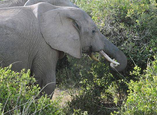[ezcol_3fifth]Je kunt je afvragen waarom er in dit land, dat toch bekend staat om zijn olifanten, een speciaal olifantenpark nodig is. De uitleg is simpel: voorheen kwamen in de hele Kaapkolonie olifanten voor. Met de komst van de kolonisten werden zij -overigens net als de oorspronkelijke menselijke bewoners- bijna volledig uitgeroeid. In 1919 werd majoor Philip Pretorius zelfs aangesteld om de laatst overgebleven olifanten om te brengen. In elf maanden tijd legde hij er 120 om. Slechts 15 angstige olifanten slaagden erin zich in het dichte kreupelhout te verschuilen. Toen door de massale slachting de publieke opinie omsloeg, werd in 1931 een stuk land van 68 vierkante kilkometer uitgeroepen tot Nationaal Park. Maar ja: hoe hou je zulke krachtpatsers binnen een omheining? Na veel experimenteren lukte het opzichter Graham Armstrong een omheining te maken met treinrails en liftkabels.[/ezcol_3fifth] [ezcol_2fifth_end]Jarenlang was Addo NP een soort grote dierentuin. Men strooide zelfs sinaasappels om de schuwe dieren te lokken en op hun gemak te stellen. Dat lukte blijkbaar goed, want de kudde groeide uit tot 265 dieren in 1988. Daardoor was vergroting van het grondgebied nodig en besloot men olifanten van elders te halen, om inteelt te voorkomen. Hapoor blijkt dat prima te hebben begrepen ;-)) Nu zijn er meer dan 450 olifanten in het park, die de beschikking hebben over zo’n 600 m2. Men wil die omvang nu zelfs vier keer zo groot maken.[/ezcol_2fifth_end]