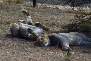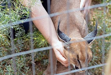 Via een trap loop je naar een soort looppad dat over de ‘kooien’ heenleidt. Vanaf die hoogte kun je de verschillende dieren goed bekijken en… wat belangrijker is… ze kunnen niet bij je komen. We krijgen uitgebreid uitleg over het doel van deze farm: dieren opvangen en zo mogelijk weer uitzetten in de natuur. We lopen via diverse diersoorten naar het nieuwe onderkomen van de leeuwen: Chuck en Norris. Zij zullen over een aantal maanden weer worden terug geplaatst in hun natuurlijke leefomgeving, maar dat zal wel geleidelijk in stapjes gaan. Zo kunnen ze steeds weer een beetje meer wennen aan een omgeving zonder mensen.