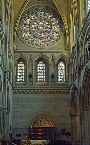 Er stond hier –zoals dat vaak gaat- een middeleeuwse parochiekerk, maar die werd in 1877 tot bisschopszetel verheven. Daar hoorde een nieuwe kathedraal bij, vond men. De architect streefde naar een perfecte kopie van een middeleeuws gotische kathedraal. Dat is hem goed gelukt, maar hij koos voor de verkeerde stenen. De combinatie van ongeschonden graniet uit Cornwall en de honingkleurige steen uit Somerset leidden tot een vrij klinisch geheel. De glas-in-loodramen zijn hergebruikt: afkomstig uit de parochiekerk.