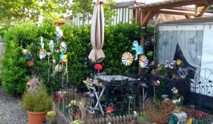 Aan het eind van de middag doen we even ”een rondje camping” om te zien hoe het er allemaal uitziet. Dat kent twee gezichten: de grote ruimte voor zowel stacaravans la ”doorstromers” ziet er netjes uit.